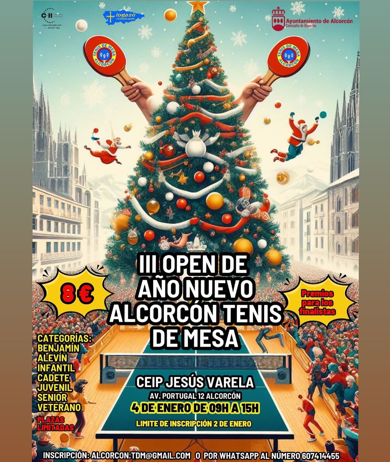 El 4 de enero de 2025 se celebra el III TORNEO DE AÑO NUEVO DE ALCORCÓN TENIS DE MESA💛💙💛